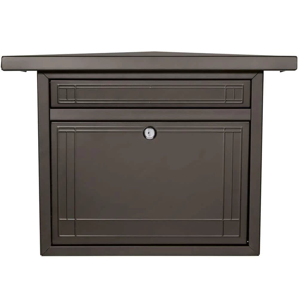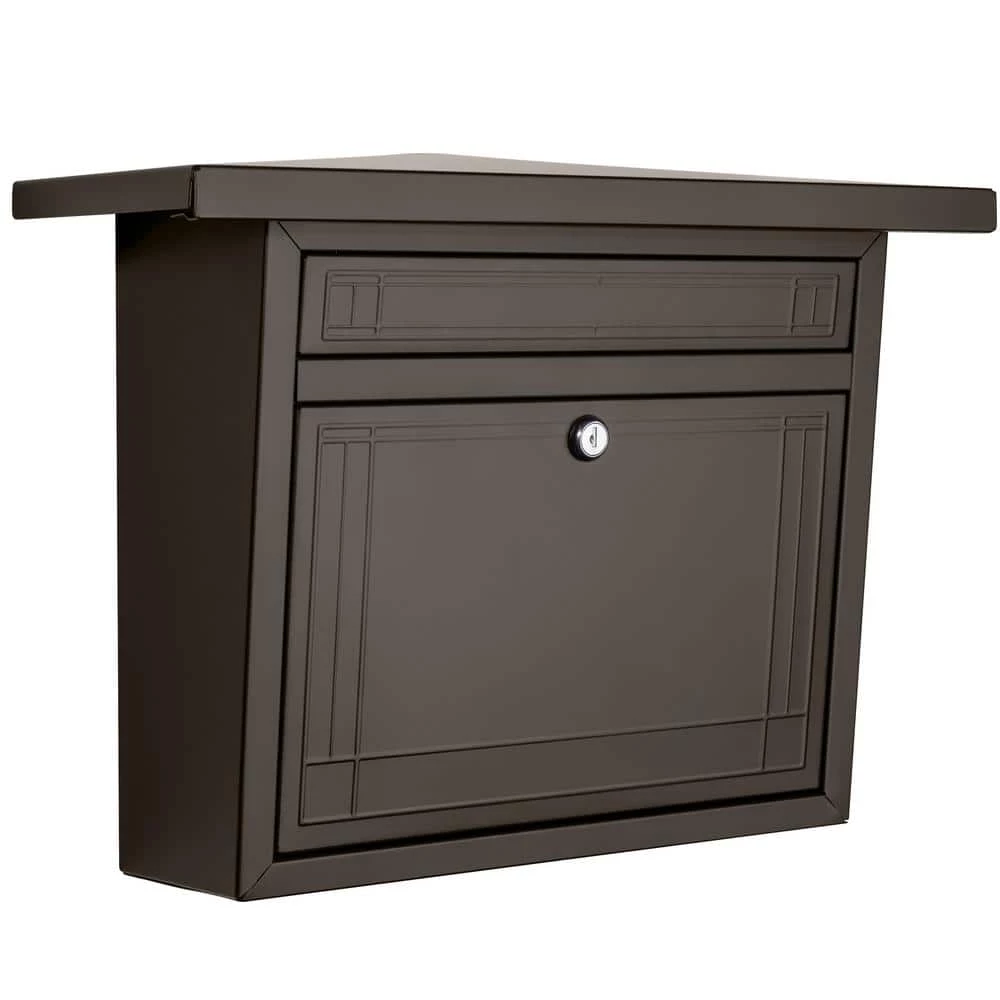 In 1906, Emma Beachy commissioned Frank Lloyd Wright to renovate a Gothic cottage for her family. Wrights renovations were dramatic and left little more than the foundation of the original structure intact. The house features gabled roofs and is finished in red brick on its first story and stucco with dark wood trim on its upper level. The Beachy Locking mailbox draws inspiration from this cottage and has been constructed of galvanized steel and fully powder coated in a premium oil rubbed bronze finish. The wall mount mailbox is equipped with a stainless steel cam lock with 2 keys to keep your mail safe and secure all while adding a touch of Frank Lloyd Wright to your home. His very own signature is embossed into the back of the mailbox for an extra detail. With proper care, the Beachy mailbox should stay looking as good as the day you bought it for many years to come. For added longevity, mount the mailbox under an eave or other protected area.