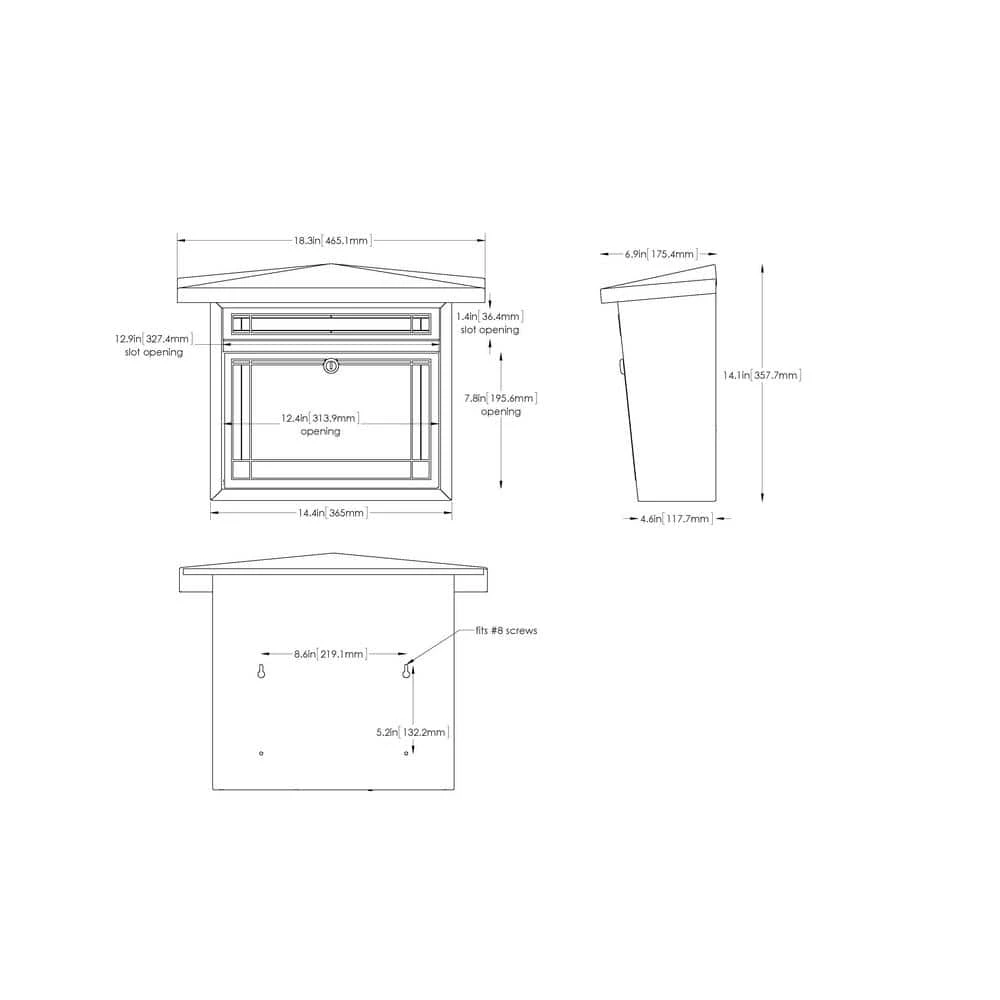 - Mailbox is 18.4 in. W x 14.8 in. H x 6.9 in. D and weighs 7.84 lbs.