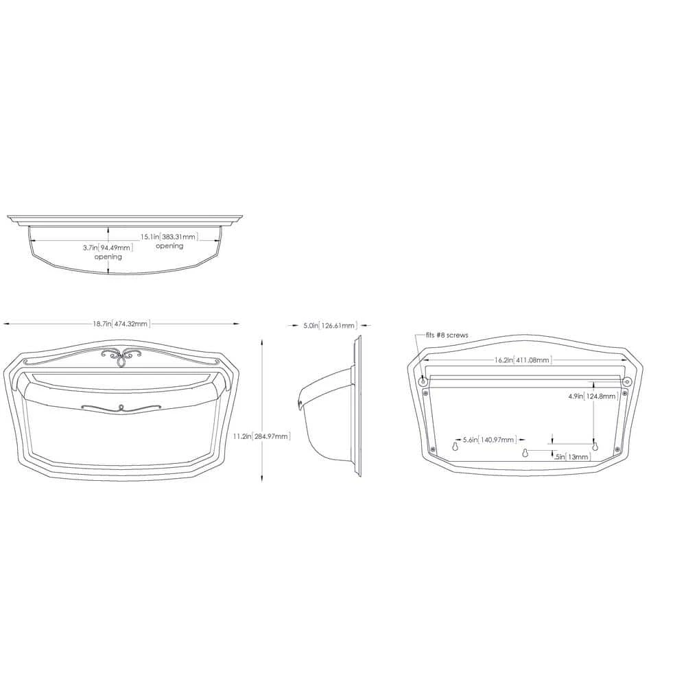 - Mailbox is 18.7 in. W x 11.2 in. H x 5 in. D