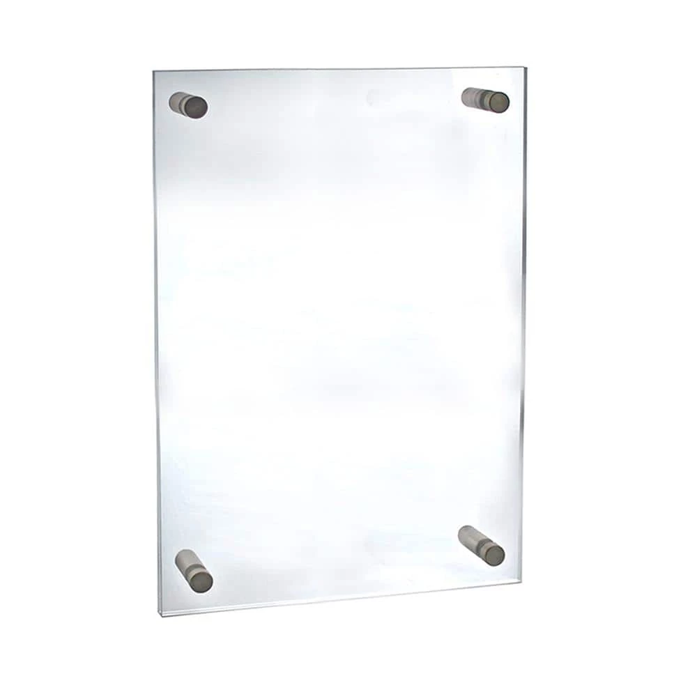 These acrylic wall mount sign holders add elegance to your professional environment with clear acrylic wall mount frames with silver satin aluminum caps and standoffs. Frames can be used vertically or horizontally. When installed the display will stand away from the wall, giving the display a stylish contemporary appearance.