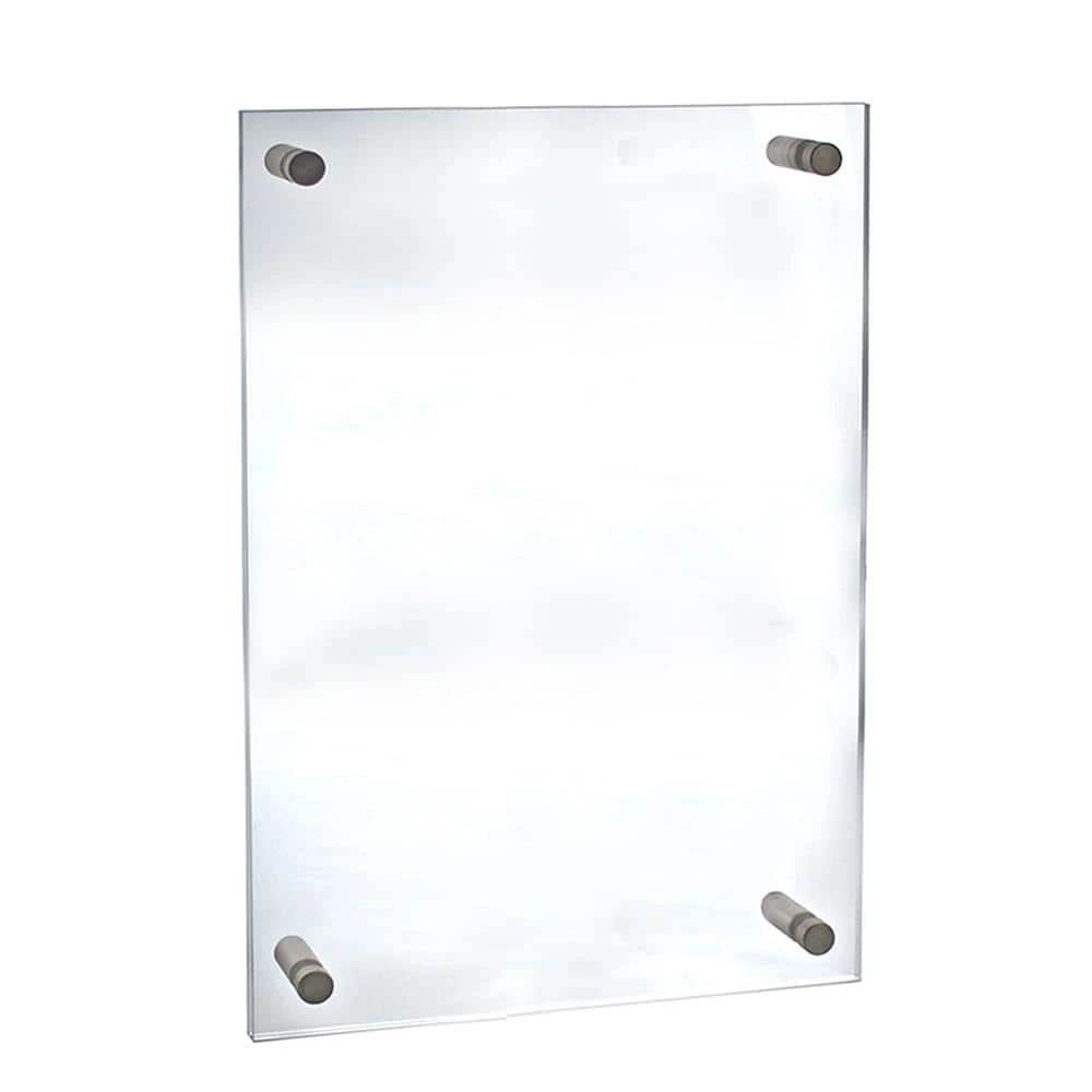 These acrylic wall mount sign holders add elegance to your professional environment with clear acrylic wall mount frames with silver satin aluminum caps and standoffs. Frames can be used vertically or horizontally. When installed the display will stand away from the wall, giving the display a stylish contemporary appearance.