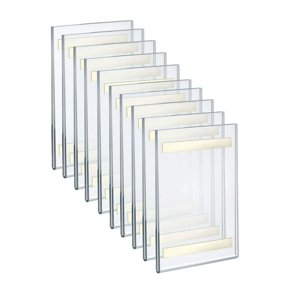 These Clear Acrylic Self Adhesive Sign Holder Frames are made of high quality acrylic with heavy duty adhesive removable tape on the back. Peel and stick the acrylic wall frame on a clean, flat surface. These frames with mounting tape are a great value and ideal to display your business hours, advertisements, branding message, menus, gym schedules, artwork, photos, signs, and more. Don’t tape pictures to the wall, they will just get ruined over time, this acrylic holder is a great option to display artwork or photos on the wall. Use as a door sign holder or name plate. The adhesive foam tape allows for easy mounting that will stay strong, but also removable when needed. The adhesive tape can only be used one time, once removed, the tape will no longer stick and will need to be replaced. Simple top load and side load design makes it easy to insert and swap out your literature, document, photo or sign in and out of the frame. This plastic sign holder is an optimal solution to display your information or message in an office, school, hospital, medical center, hotel, restaurants, airports, elevators, lobbies, cafes and so much more. The clear acrylic frame will protect your graphic, photo or printed paper from the elements. The sign holder fits a standard 5.5″ x 8.5″ half letter paper, or folded printer paper. Great Value, Sold in Pack of 10.