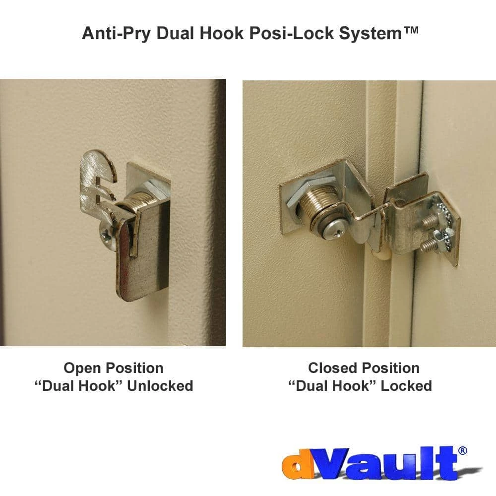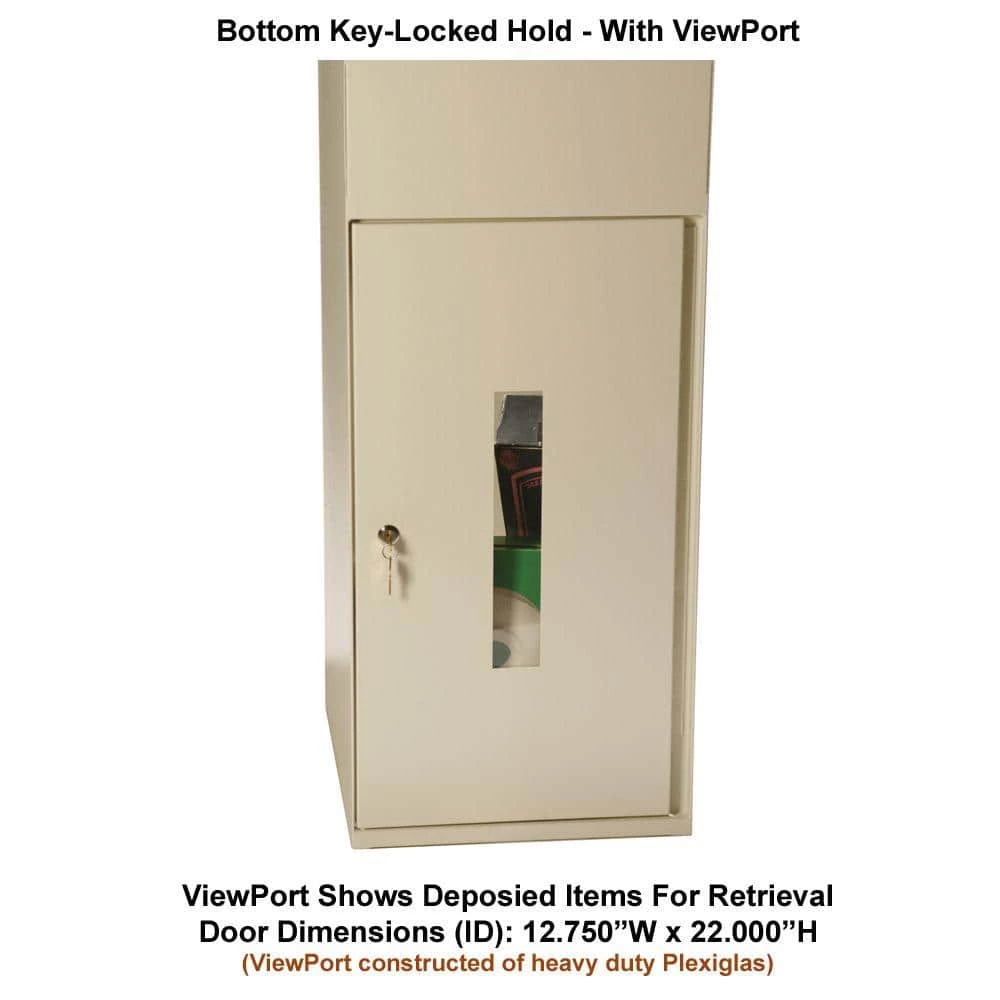 - Unique security-drop door mechanism and rear key-locked storage compartment prevent access to deposited packages (U.S. patent number 6,347,737); note: top vault sold separately