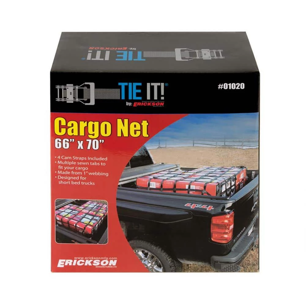 1 in. Black Polyester Webbing, 6 in. x 6 in. Inside Diameter. Of The Net Squares, 6 Chromate Finished O Rings with 1.9 in. Inside Diameter. Made From 0.3 in. Steel. 1 in. x 6 ft. Zinc Plated Cam Buckle Strap, Black Polyester and Vinyl Coated Hooks. 1/4 in. Hardened Steel Hooks, 4 in. x 1-5/8 in. with 1 in. Opening.