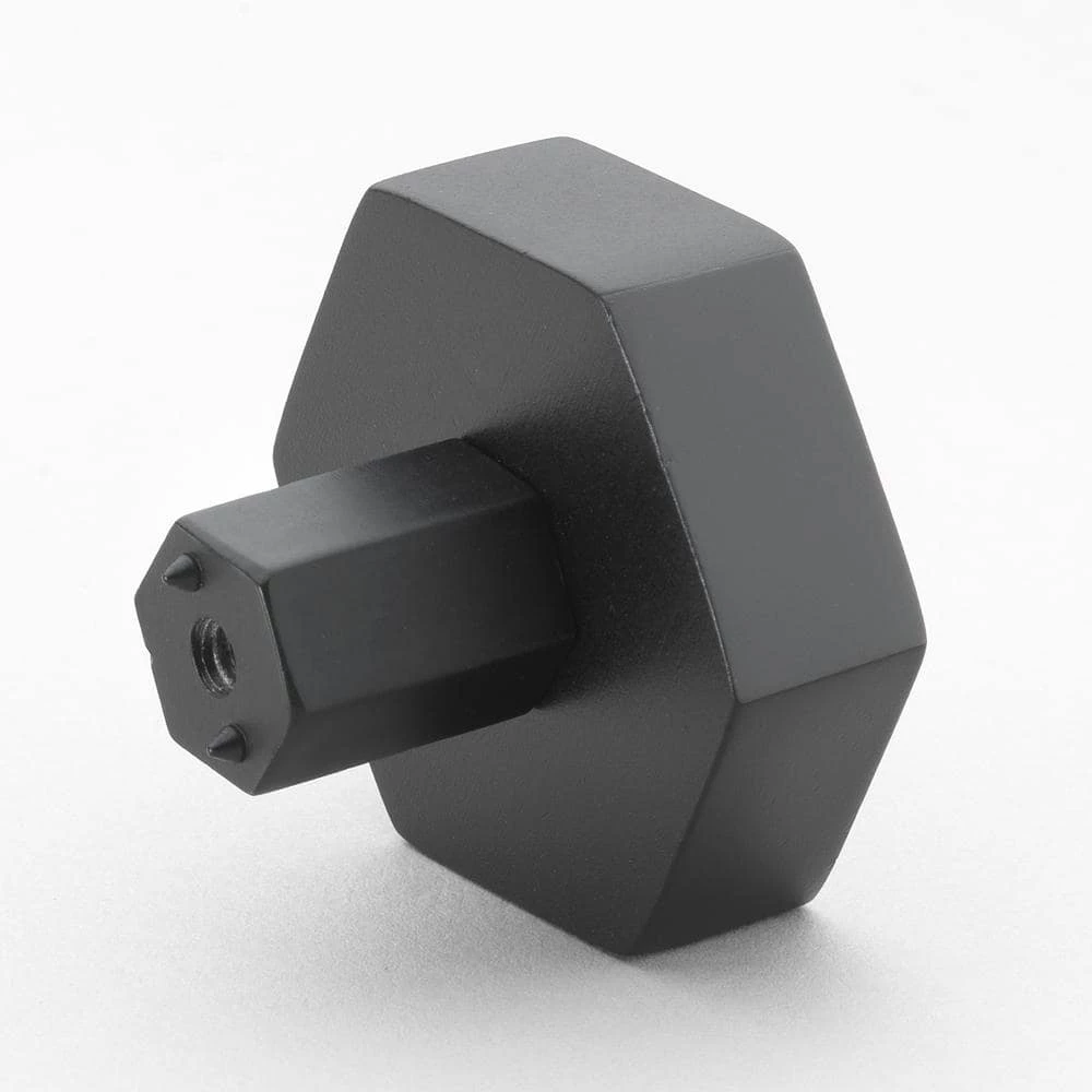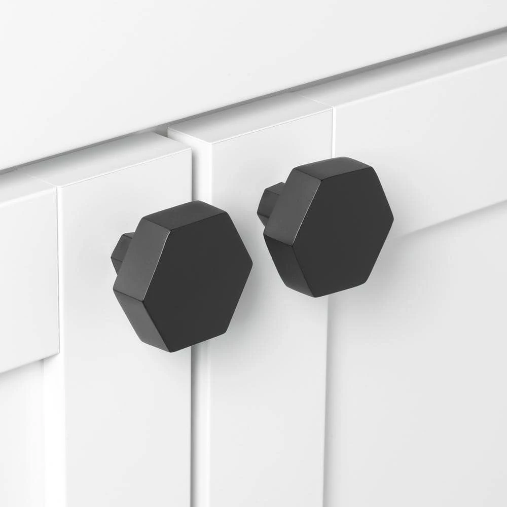 This bold heavy-weight hexagon knob will give you a modern look in your kitchen, laundry room or bath. The thick hexagon shape gives you an easy-to-grip handle. Matching pulls are also available.