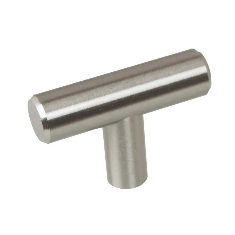 These thick solid steel T-bar cabinet knobs from GlideRite Hardware will add a modern touch to your kitchen or bathroom cabinet drawers. These knobs are 9/16 in diameter compared to our normal bar knobs, which are 1/2 thick. They also have a stainless steel finish. Each knob is packaged individually to prevent damage to the finish and comes with necessary hardware for easy installation.