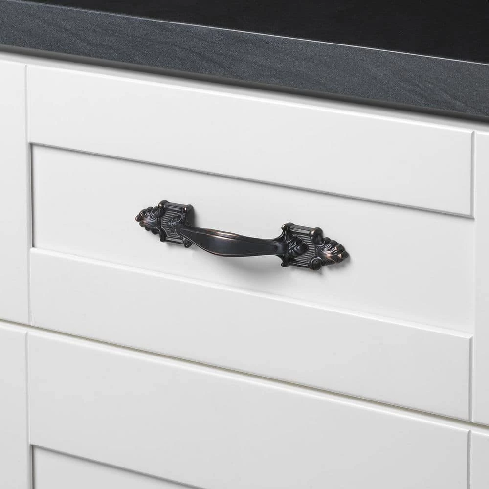 Create a classic look on your drawers with these deco cabinet Pull. The ornamental leaf design on the ends adds a decorative touch, while the brass finish lends a vintage look to the Pull. The curved handle makes it easy to grab these Pull when opening a drawer or cabinet door. Each pull is individually bagged to prevent damage to the finish and includes standard #8-32 x 1 in. screws for easy installation.