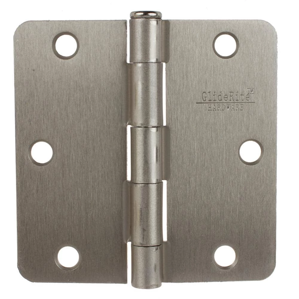 GlideRite Hardware brand interior residential steel full mortise door hinges. Size 3-1/2 in. x 3-1/2 in. with 1/4 in. radius corners. Please see image for radius sizes. Fully assembled hinges with matching installation screws.