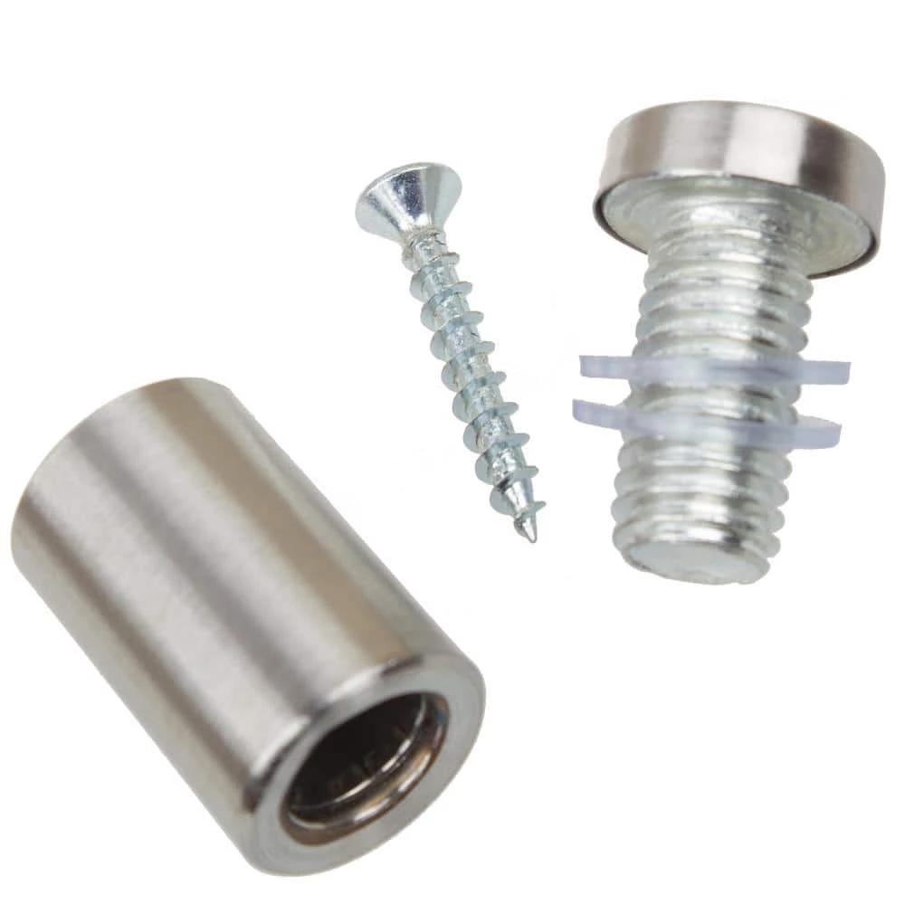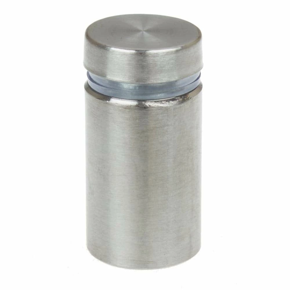 Stainless steel standoffs and cap assembly to protrude glass, mirrors, signs or any other object out from a wall or table. GlideRite Hardware standoffs are made of stainless steel with a brushed stainless steel finish. Price includes a single standoff, cap, nylon washers, mounting screw and drywall anchor. Cap bolt is 3/8 in. in diameter and the mounting hole is 3/16 in. in diameter. Standoffs from GlideRite Hardware are available in diameters of 1/2 in. to 1-1/2 in. and in various lengths. Diameter: 5/8 in. Cap Height: 1/8 in. Base Length: 1 in. Panel Thickness: 1/2 in. Finish: Brushed Stainless Steel Material: #202 Stainless Steel.