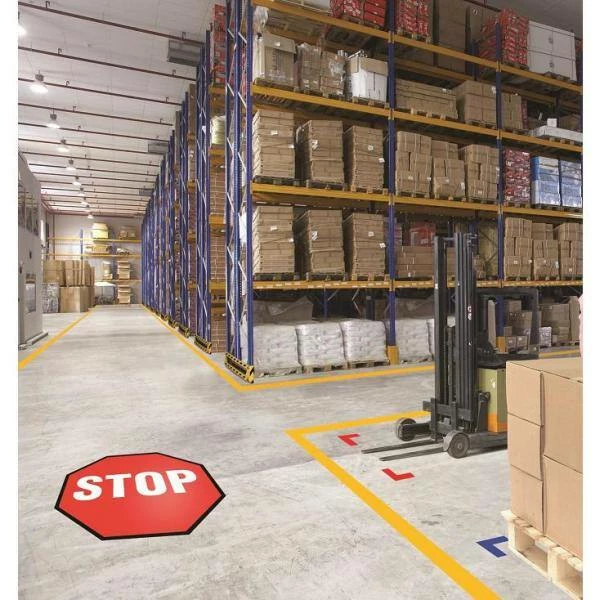 24 in. in Mighty Line heavy duty floor sign. Mighty Line heavy duty stop floor signs are peel and stick signs. Mighty Line floor signs are great for marking safety, industrial and 5s areas.